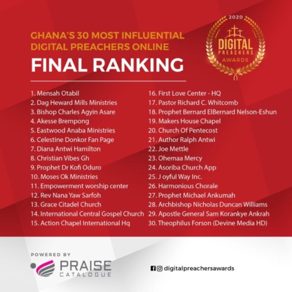 Nominations opened on 1st November 2020 and closed on 13th December 2020; which was followed by assessment and careful considerations by a team of experts for the '30 Most Influential Digital Preachers in Ghana'.