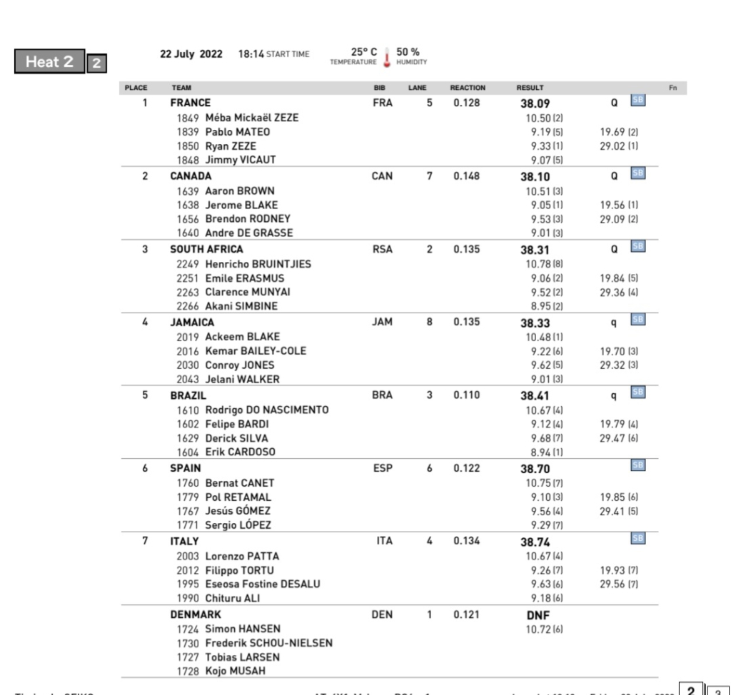 His dash (9.21s) in the curve was 0.04 seconds faster than Elijah Hall of the USA who run 9.26s. Great Britain's Nathaniel Mitchell Blake's, 9.44s was third fastest in the curves.