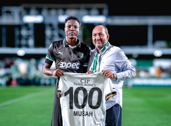 Başkanımız Aşkın Demir, Musah’a üzerinde “100” yazılı özel forma ve plaket takdim etti.