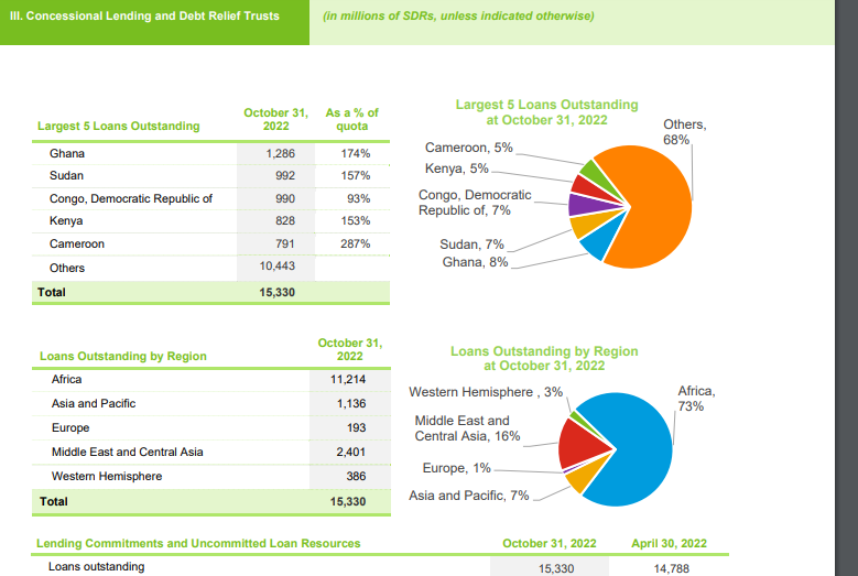 Meanwhile, Sudan and Democratic Republic of Congo maintained their 2nd and 3rd positions in Africa with the largest outstanding loans of 992 SDR and 990 SDR to the Fund.