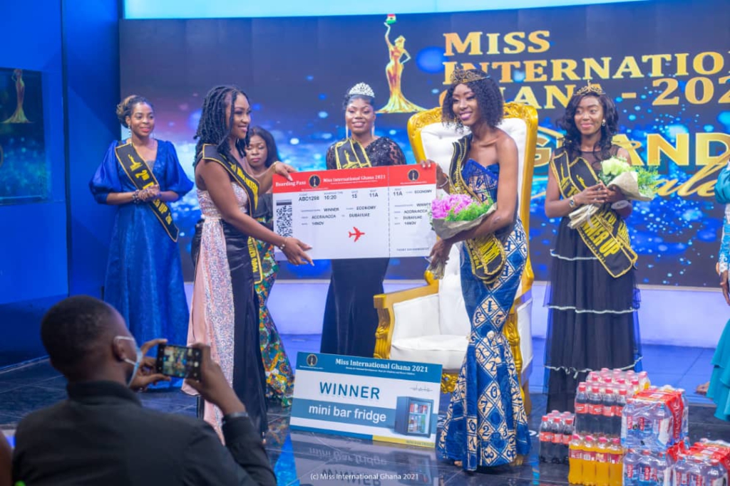 This year's Miss international Ghana was supported by Irene Serwah Ofori, Angelina Diyuoh Minski, Compuville Systems and Thea Villa hotel. Other supporters include Adansi Travels. Miss international Ghana 2021 was powered by the Miss International Ghana Organisation.