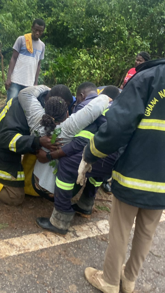 The Ghana National Fire Service (GNFS) rescue team arrived promptly and successfully rescued the victims from the vehicle.