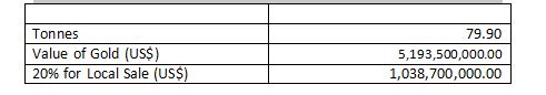 Also, according to Minerals Commission Industry Statistics for production year 2020, total income from gold was US$ 3.59 billion. Using the latest statistics from the Chamber of Mines for 2021, which pegged the total volume of gold exported in 2021 at 79.9 tonnes, this can be projected into 2023 with estimated value of US$ 5.193 billion. This means that 20% of this amount will have to be traded locally to the Bank of Ghana/PMMC. VAT is expected to be on the 20% portion of the total stock with the following VAT implications.