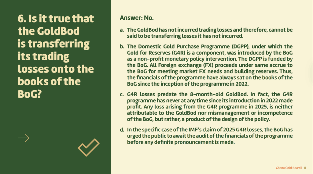 “Any loss arising from the G4R programme in 2025 is neither attributable to the GoldBod nor to any incompetence of the BoG, but rather a product of the design of the policy,” the statement said.