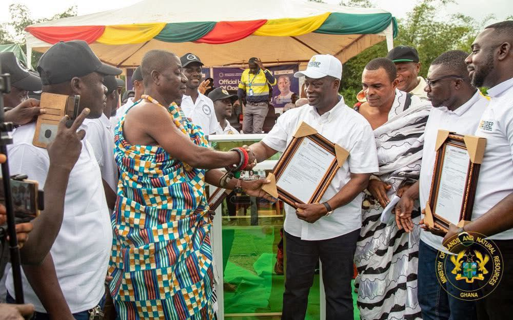 The Minister for Lands and Natural Resources, Emmanuel Armah Kofi Buah, has handed over mining operating permits to the Anwia and Teleku Bokazo Responsible Cooperative Mining Society Limited in the Ellembelle District, officially marking the rollout of the Responsible Cooperative Mining and Skills Development Programme