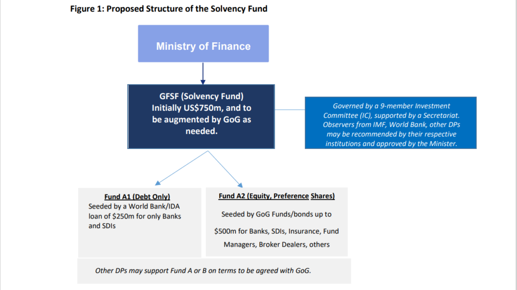 According to the Finance Ministry, the government will provide financing support to the Fund in line with the resources envisaged by the Extended Credit Facility (ECF) macro-framework baseline, and intends to deploy these resources in phases to address the recapitalization efforts of the financial sector.