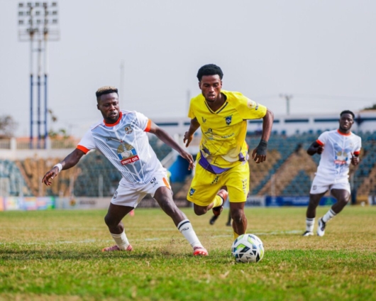 Nations FC, however, responded with resilience and authority, inspired by their captain Razak Simpson. The defender restored parity in the 19th minute, rising highest to meet a corner kick with a thumping header that beat goalkeeper Felix Kyei.