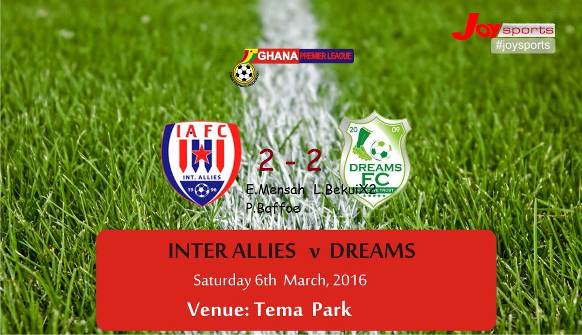 Promising striker Lawrence Bekui scored a brace in either half but a Inter Allies rallied from behind on both occasions with goals coming from Evans Mensah and former Asante Kotoko midfielder Prince Baffoe. The game which was attended by Black Stars coach Avram Grnat produced fine blend of attacking football. Inter Allies will however feel let down after missing a penalty when Mozart Adjetey saved Wahab Ackwei’s kick.