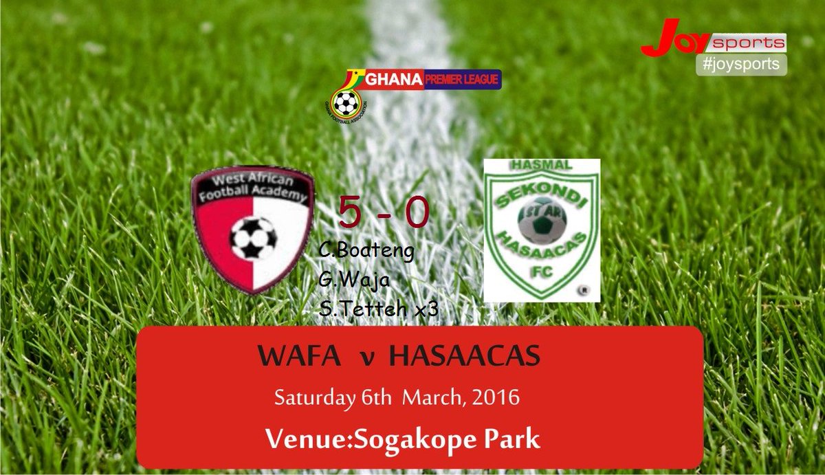 Ghana winger Samuel Tetteh became the first player to score a hat-trick in the 2016 Ghana Premier League season as he helped WAFA thrash Sekondi Hasaacas 5-0 defeat at Sogakope Park.