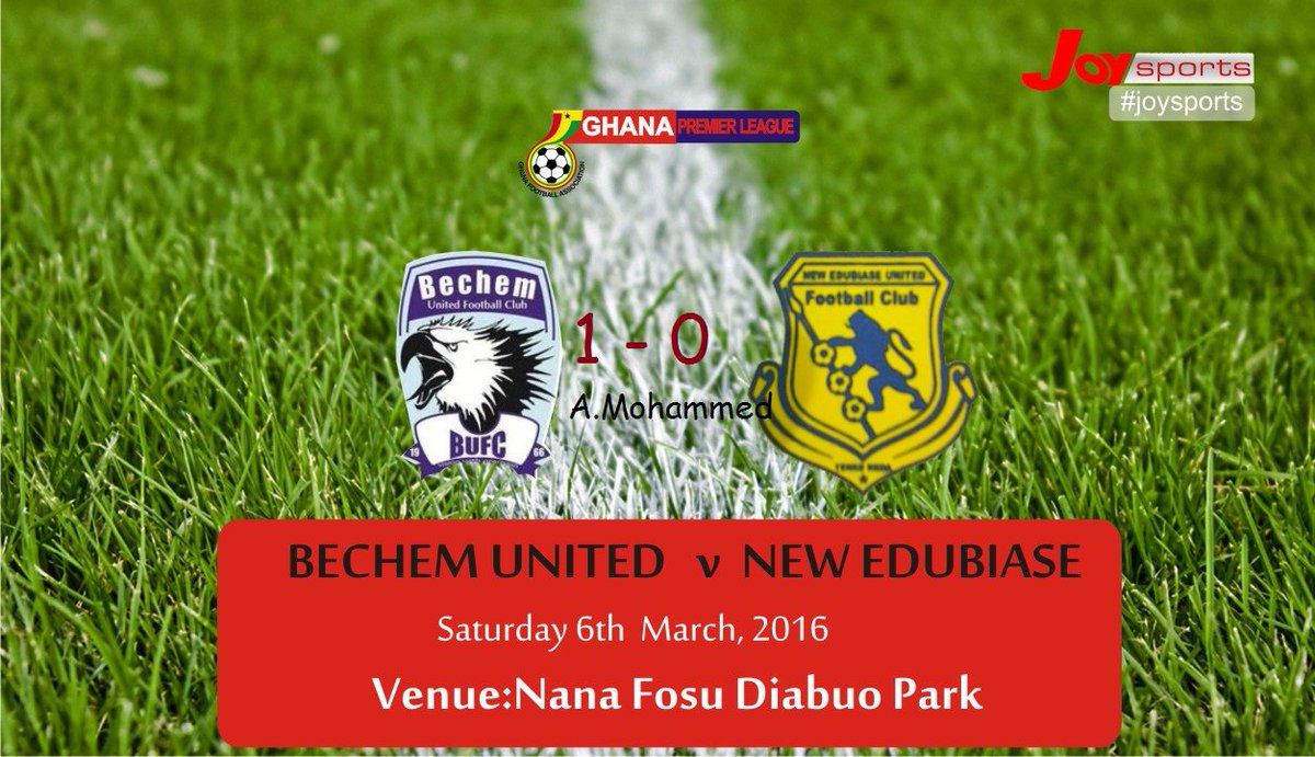 Bechem United continued their fine home run with 1-0 victory over New Edubiase United at the Nana Fosu Gyeabour Park .Aminu Mohammed got the match winner to hand all three points to the home side in the 69th minute when the game was heading towards a barren draw. Aminu Mohammed's shot from distance deflected to beat goalie Benjamin Mensah.