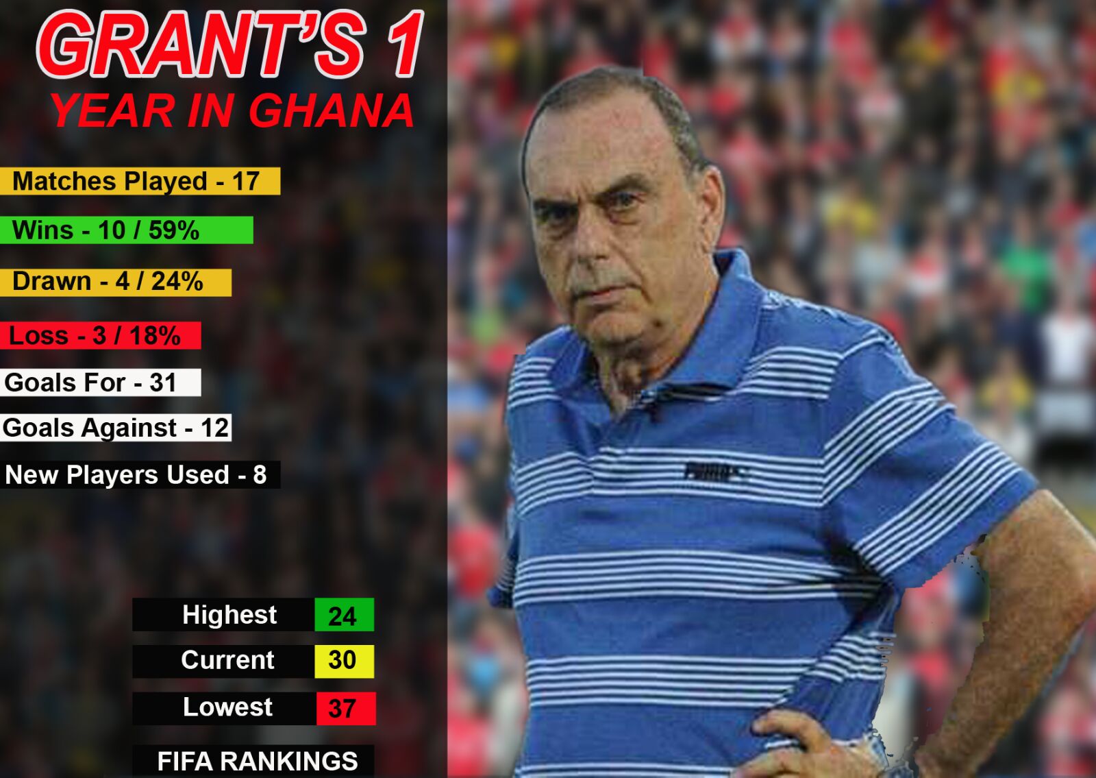 Today - December 1 - marks exactly a year since Grant officially started work as head of the senior national team. The former Chelsea boss believes the Black Stars have been impressive in his first year in charge of the team.