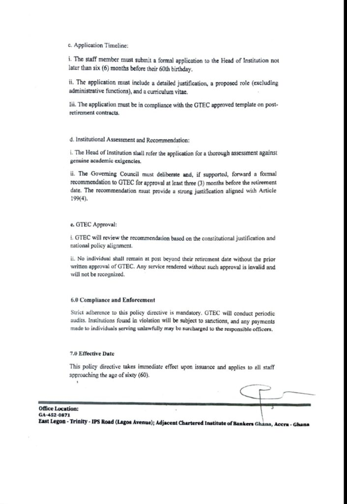 The Ghana Tertiary Education Commission (GTEC) has withdrawn its policy directive on retirement age and post-retirement contracts for senior academic members in public universities.