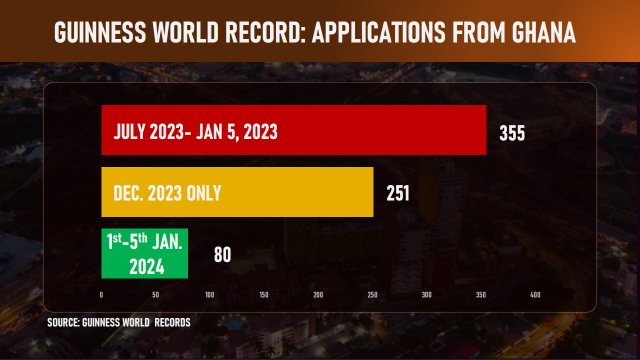 Since July 2023, there have been a total of 355 applications from individuals in Ghana alone, indicating a significant upswing in record-breaking aspirations.