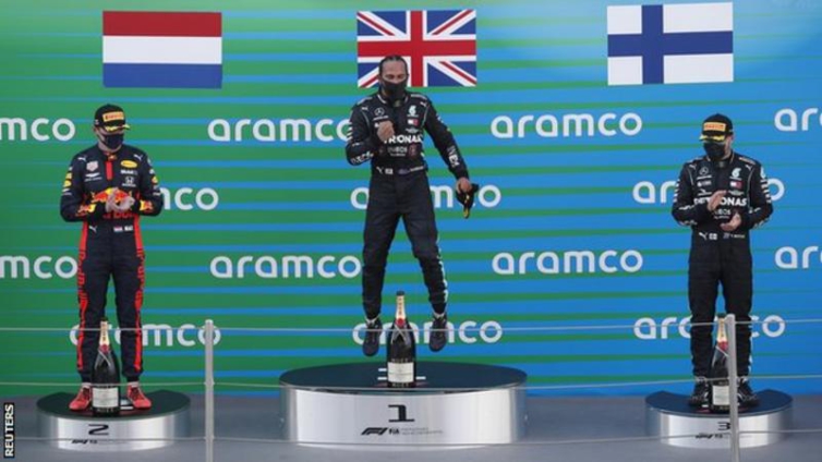 Hamilton's team-mate Valtteri Bottas took third, failing to catch Verstappen despite Mercedes' efforts on strategy.