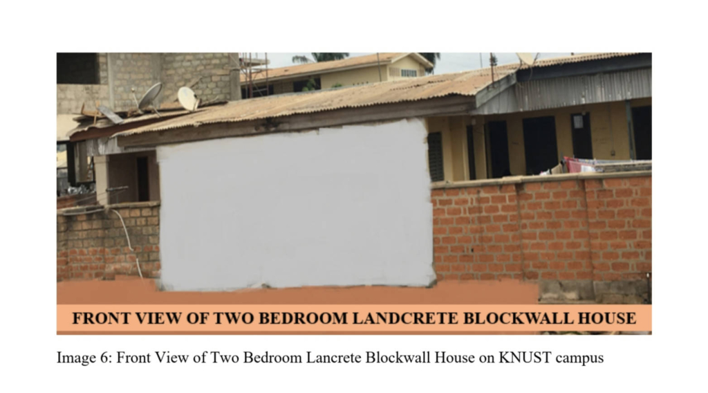 The technology involved the use of 5 to 10% cement to laterite and compressed into blocks called landcrete Tek-Block. So-called Tek-Block because the Centre for Settlements Studies, then Department of Housing and Planning Research of the KNUST was at the forefront of these R&D projects.