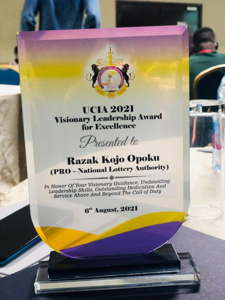 The United Clergy International Association (UCIA) Worldwide has awarded Razak Kojo Opoku, Head of the Public Relations Unit of the National Lottery Authority (NLA) at the 16th Ever Achievers Leadership Award.