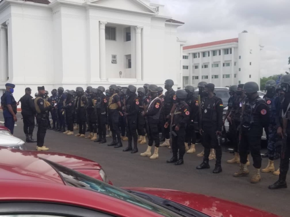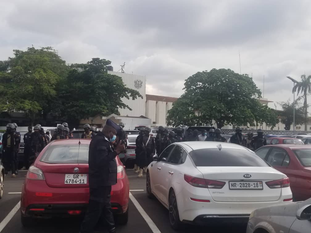 There is heavy security presence at the Supreme Court ahead of a case between the Electoral Commission (EC) and National Democratic Congress (NDC) over the compilation of a new voters' register for the December elections.