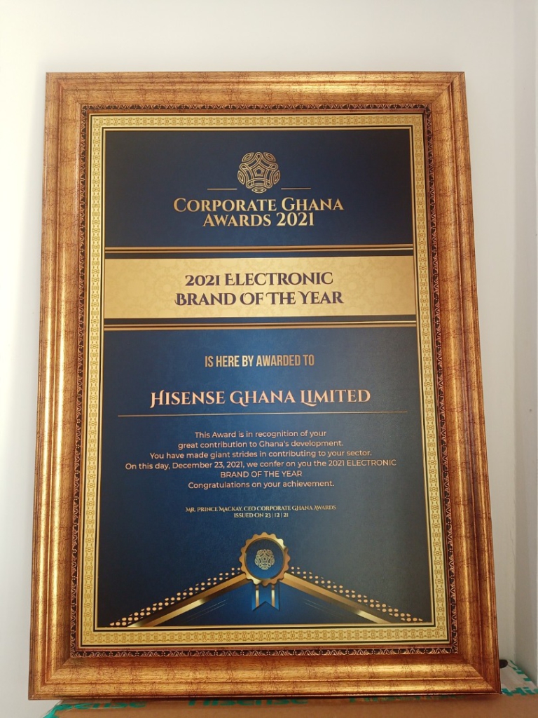 Leading electronic company, Hisense Ghana Limited ended 2021 on a very high note; picking two top awards at the 3rd Corporate Ghana Awards.
