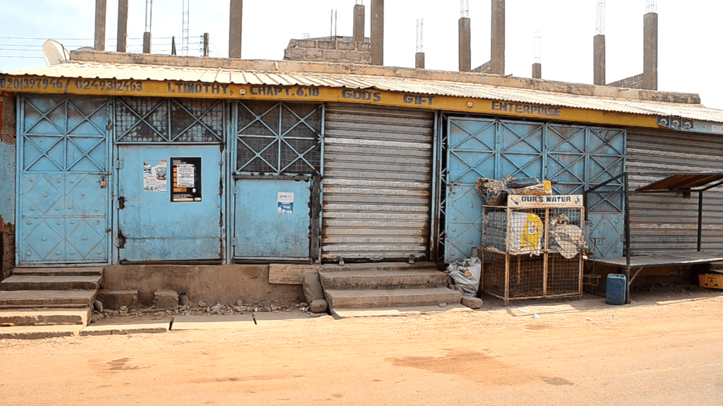 In front of his locked-up shop, a distraught Akolgo recounted that he was still inside the shop after 7pm on Wednesday when suddenly, 3 men rushed in and told him to hand over his sales.