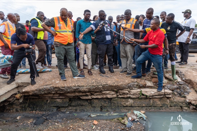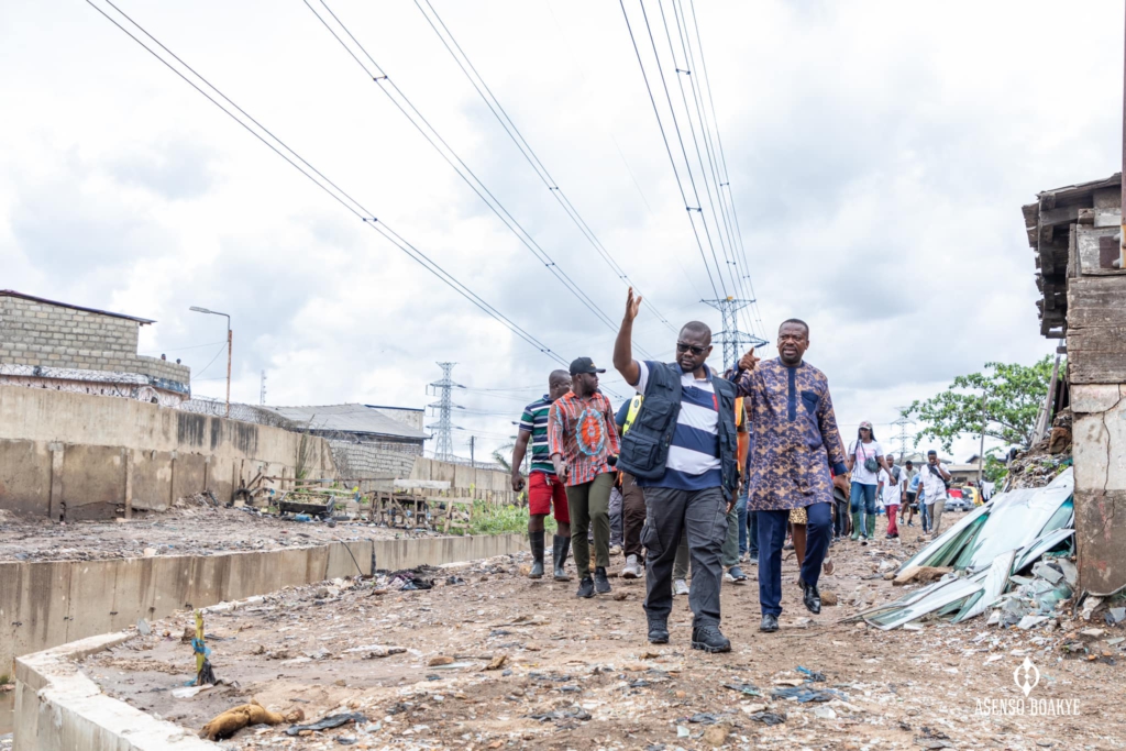 Mr. Francis Asenso-Boakye was accompanied on the tour on Sunday, May 22, by officials from the Ministry, the Hydrological Services Department, and the National Disaster Management Organisation (NADMO).