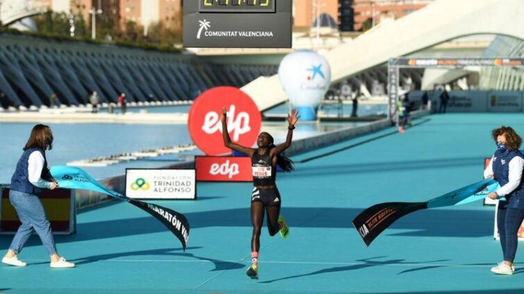 In the same competition in Valencia, Ethiopian 1500 meters star and record holder Genzebe Dibaba ran 65:18 to win her half-marathon debut.