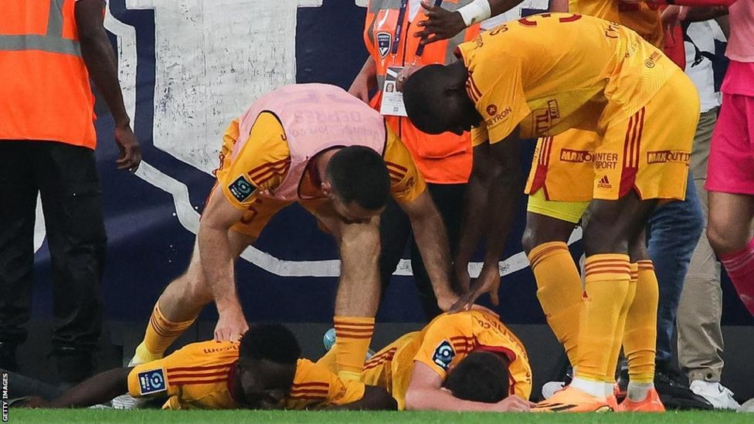 The referee abandoned the game, saying the midfielder had suffered a concussion injury.