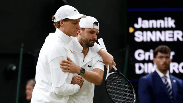 Jannik Sinner said he could not accept his progress to the Wimbledon quarter-finals "as a win" after a tearful Grigor Dimitrov was forced to retire in an emotional end to their match.