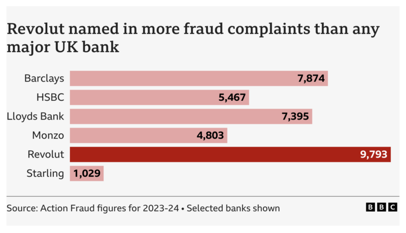 The BBC has found that Revolut was named in more reports of fraud in the last financial year than any of the major High Street banks.