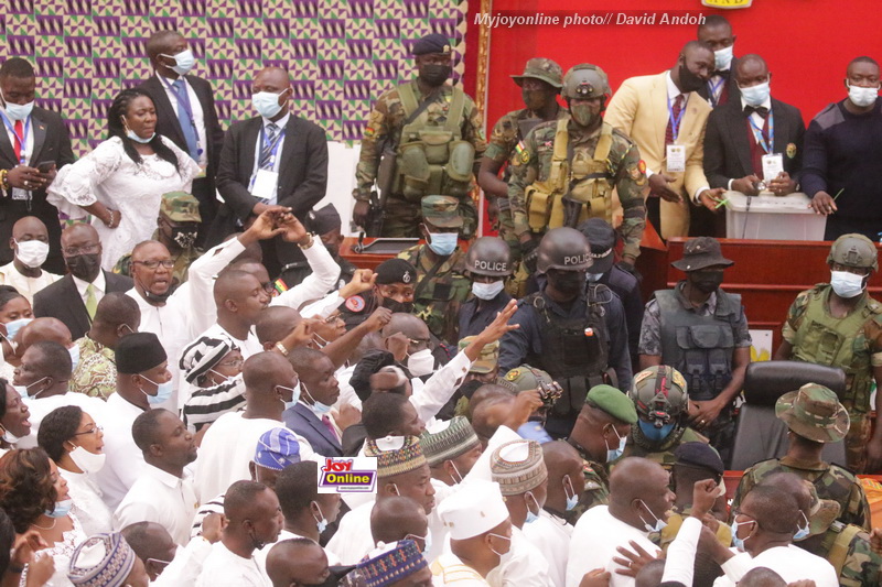 It culminated into the military and the police storming into the Chamber to restore calm for the first time in the history of Ghana's democracy.
