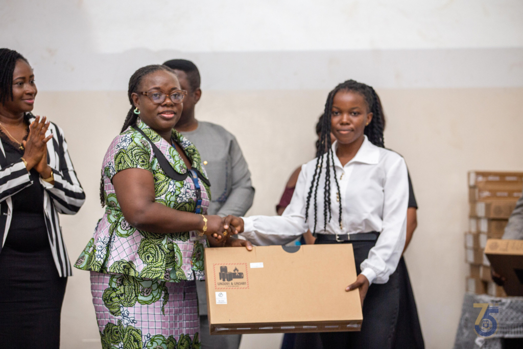 The Vice-Chancellor, Prof. Nana Aba Appiah Amfo handed over the gadgets to the students at the Cedi Conference Hall.