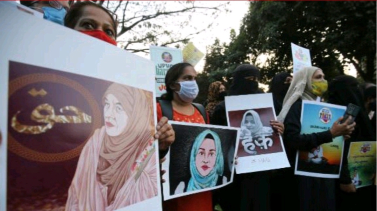Their demonstration prompted rival protests from right-wing Hindus carrying saffron scarves -- a color widely associated with Hinduism -- - and chanting a religious Hindu slogan in support of Indian Prime Minister Narendra Modi's ruling Bharatiya Janata Party (BJP).