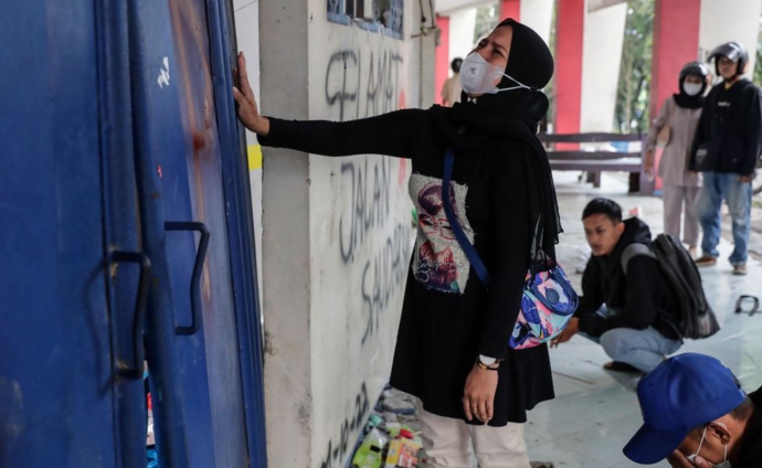 On Monday, 22-year-old survivor Aris Usmatul went back at to the stadium to lay flowers.