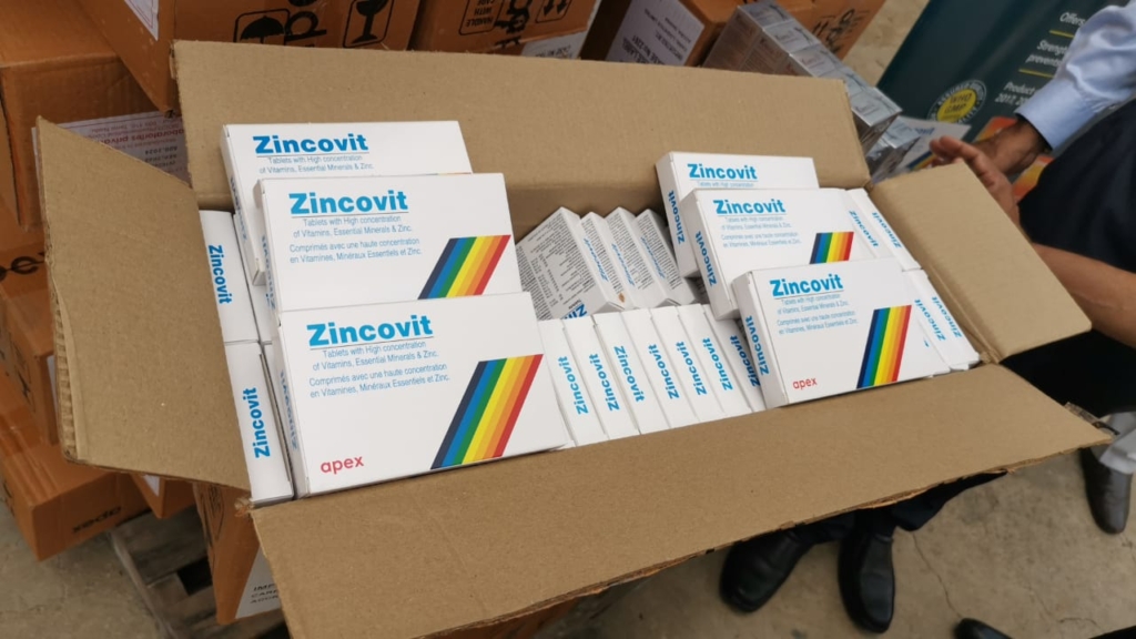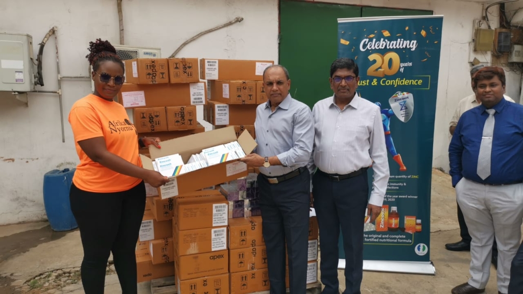 During a brief ceremony, Maloe Nartey, the Executive Director of Afrika Nyornu, received significant donations from Indus Life Sciences, which included 15,000 packs of Zincovit (Zinc plus Multivitamins), 250 packs of Zincofer, and 50 packs of Klenz V - Feminine wash.