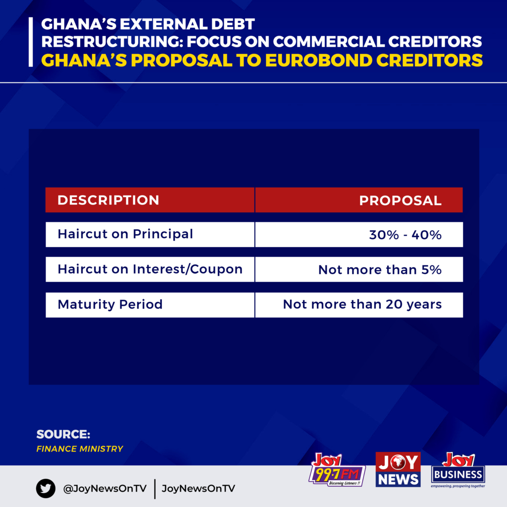 A recent update by the Finance Minister, Ken Ofori-Atta indicates that Ghana has pinpointed bonds amounting to $14.6 billion in the external commercial sector as eligible for restructuring and has boldly tabled a proposal which contains a 30 to 40 percent haircut on principal.