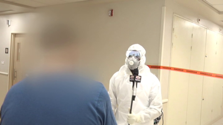 Everything is decontaminated here. Including our equipment. The microphone. The boom stick. The camera. Everything was decontaminated.