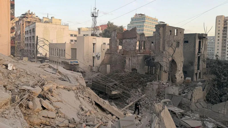 The building hit in the Bashoura neighbourhood of Beirut on Wednesday had already been targeted several times in recent days - and has now been completely demolished and reduced to a pile of rubble.