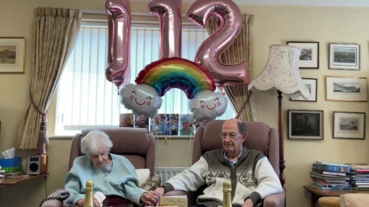 Mrs Hocquard was filmed with Mr Weighton in March as they celebrated their 112th birthdays.