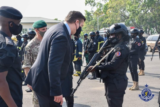 A joint simulation exercise was held in Accra in honour of the United Kingdom's Minister of State for Armed Forces James Heappey.