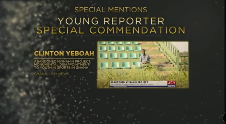 Clinton, presently an undergraduate Media and Communication student at the Kwame Nkrumah University of Science and Technology was recognised under the Young Reporters (Broadcasting) award and Video Short feature categories for his video feature titled, "Abandoned Nyinahin project: monumental disappointment to youth in sports in Ghana."