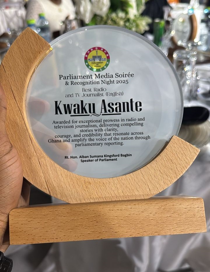 The award recognises Kwaku Asante’s outstanding contributions to parliamentary journalism, marked by consistent, accurate, and impactful reporting that has helped bring the work of Ghana’s Parliament closer to the public.