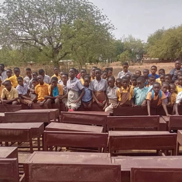 Muftawu Nabila, who is an alumnus of the school was worried about pupils’ continuous sitting on the bare floor for teaching and learning.
