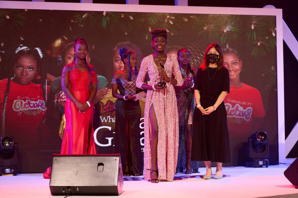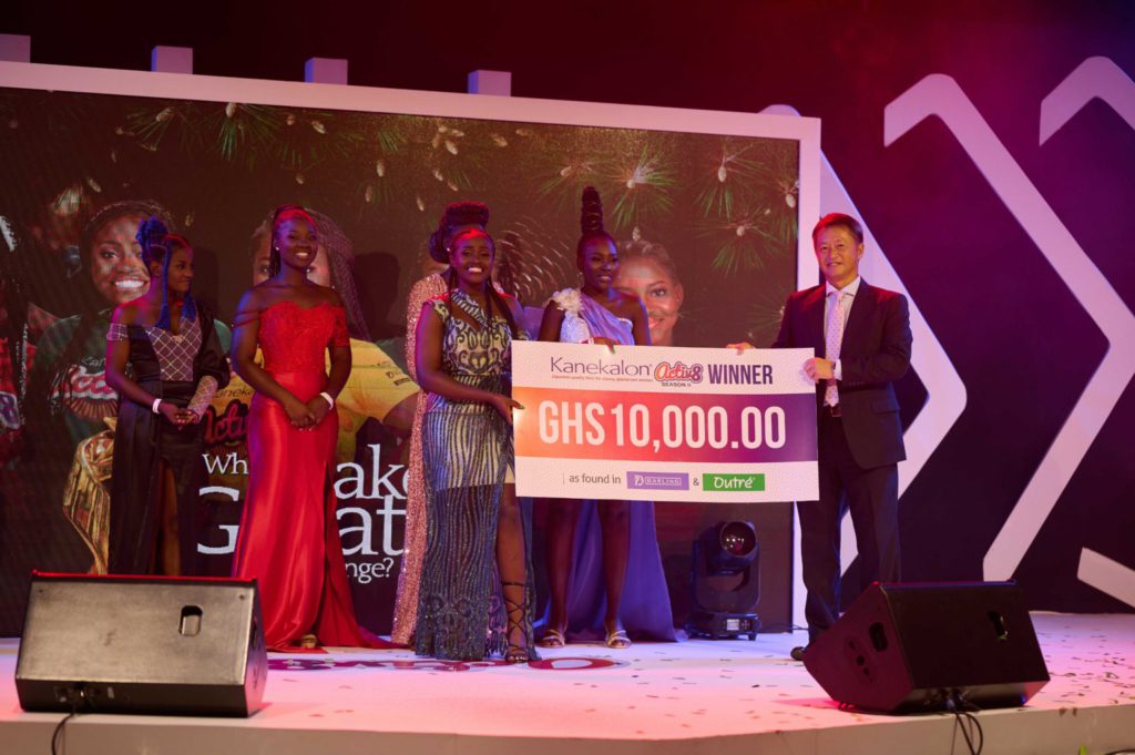 Hiro Seko, the General manager of Kaneka Africa who thrilled the audience with his “slim buster” dance moves while presenting to the winner the ultimate prize of 20,000cedis intended to be split by Kaneka as 10,000 cedis cash and 10,000 cedis to support her academic, entrepreneurial and life dreams. In an earlier speech, Seko did not hide his uttermost satisfaction on the turnout of the entire season especially the finale.