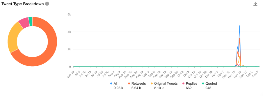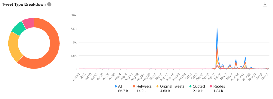 As of 7 December 2022, about 22,739 total tweets were garnered. 4,833 of the tweets were original and 13,967 were retweeted. 2097 tweets were quoted while 1842 were “replies”.