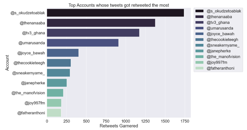 The most influential user of #KenMustGo was the MP for North Tongu and Former Deputy Minister of Information, Samuel Okudzeto Ablakwa, tweeting with username @s_okudzetoablak’s. He used the hashtag eight times and garnered 1738 retweets.