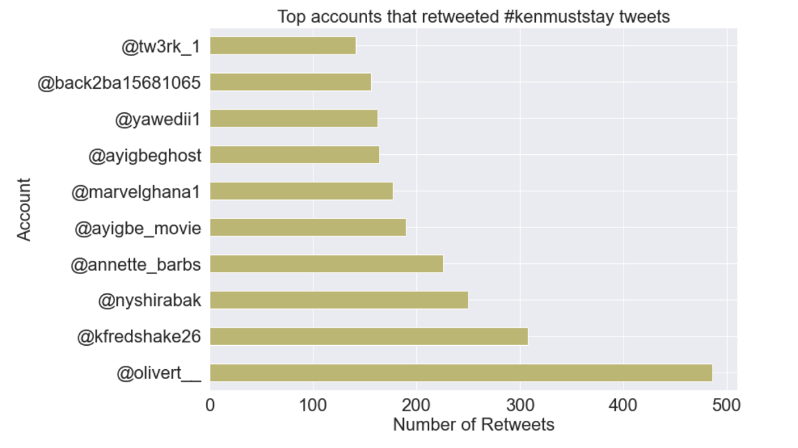 Top Influencers – An analysis of the top 10 Twitter accounts whose #KenMustStay tweets were retweeted the most.