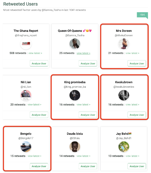 As shown in the screengrab below, this account tweeted #KenMustStay 26 times. It retweeted several tweets by @ahekadoreen, @king_promise_ba, @kwakubrownies and @bengelo17, all of whom have been identified as major drivers of the #KenMustStay narrative.