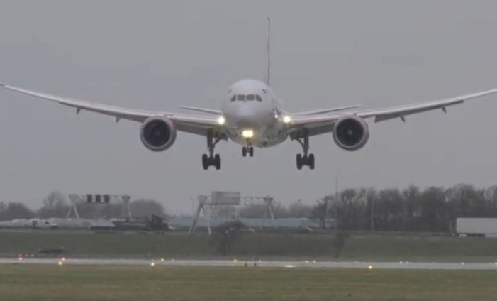 Mr Nyachieo's landing was shortly after a cargo flight abandoned landing at the Schiphol airport because of the extreme weather conditions.