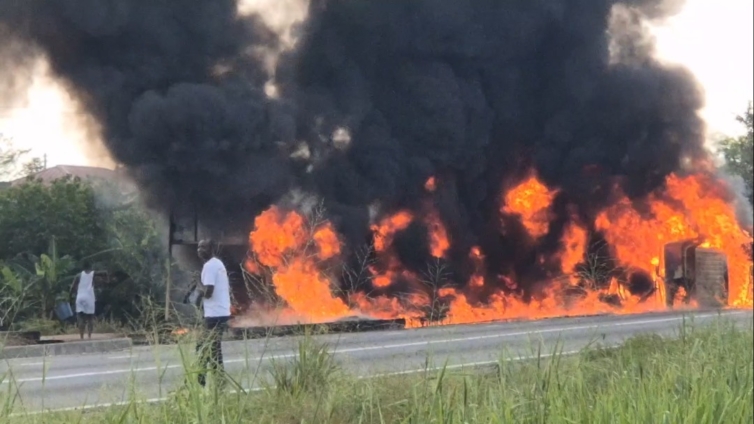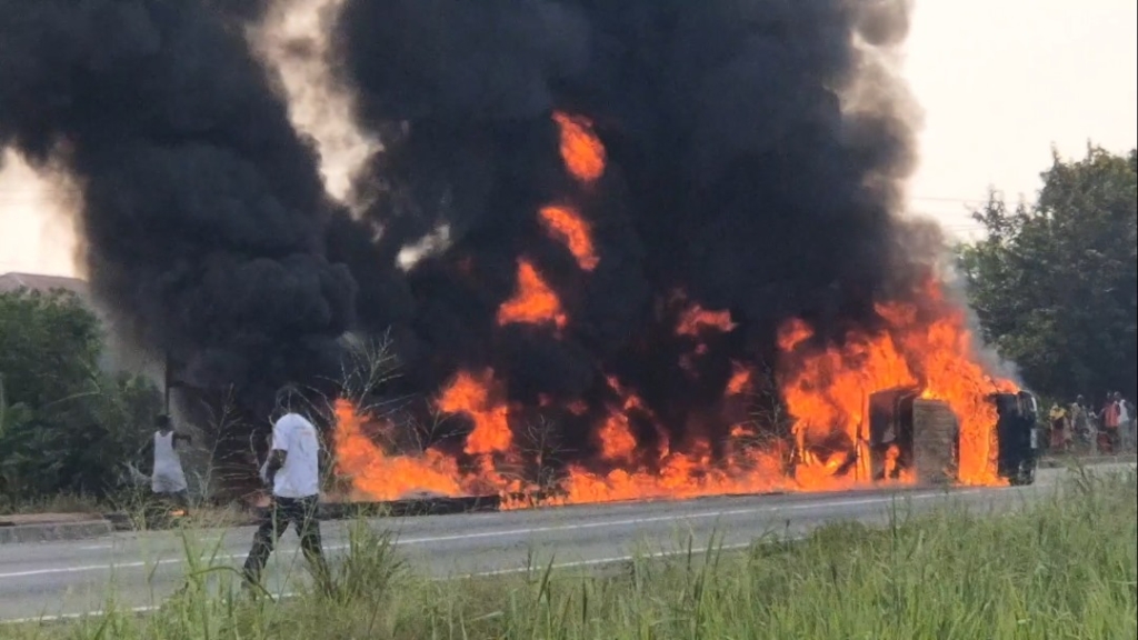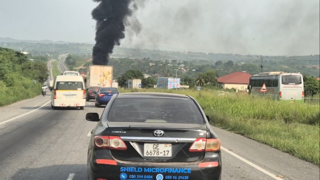 A Kia truck loaded with turpentine was completely burnt beyond recognition after an accident at Kyekyewere on the Suhum-Nsawam highway in the Ayensuano District of the Eastern Region.