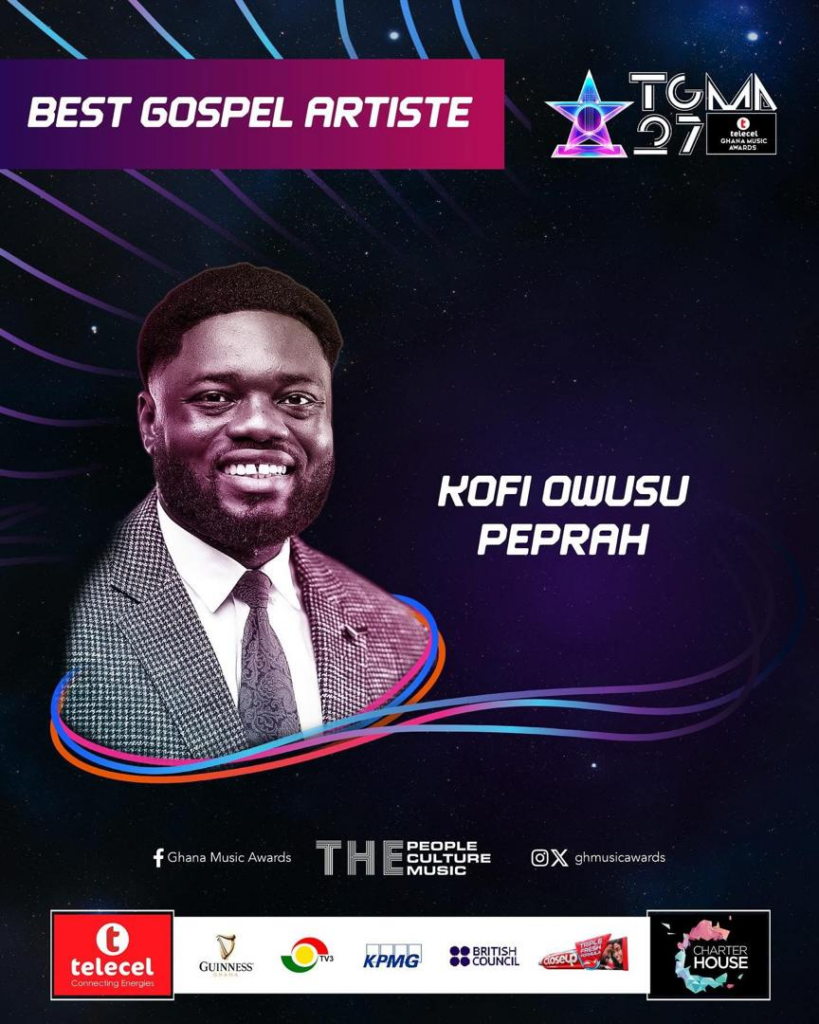 The three nominations place Kofi Owusu Peprah among the gospel artists whose music has made a significant impact over the past year.