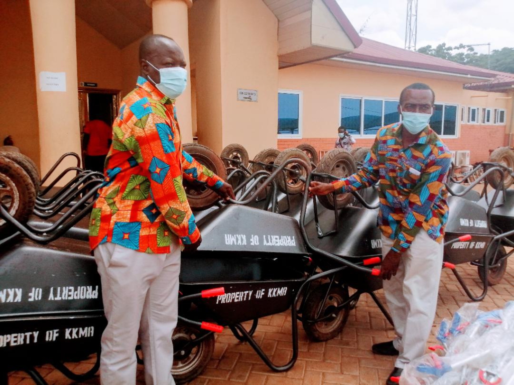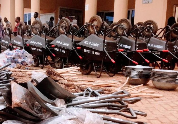 The Sanitation tools included brooms, pickers, rakes, reusable hand gloves, wheelbarrows, cutlasses spade, loading shovels, amongst other sanitation tools